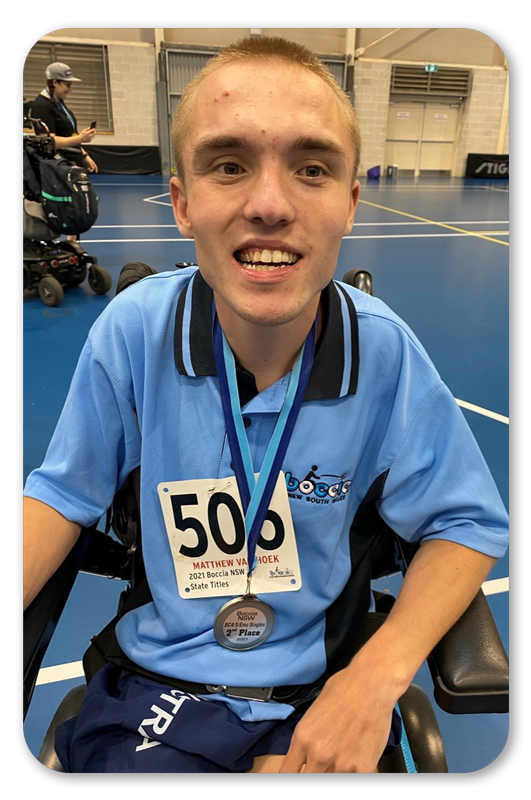 Beyond Boccie, Matthew is a huge sports fan, supporting the Newcastle Knights (NRL), Sydney Swans (AFL), and Liverpool FC. He even travelled to Paris last year to watch a friend compete in the Paralympics—where she won silver.